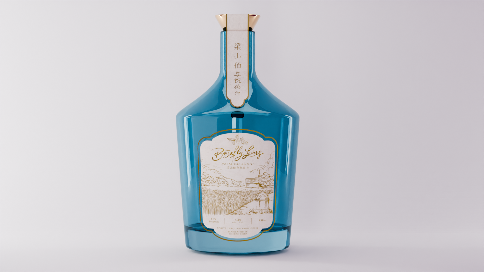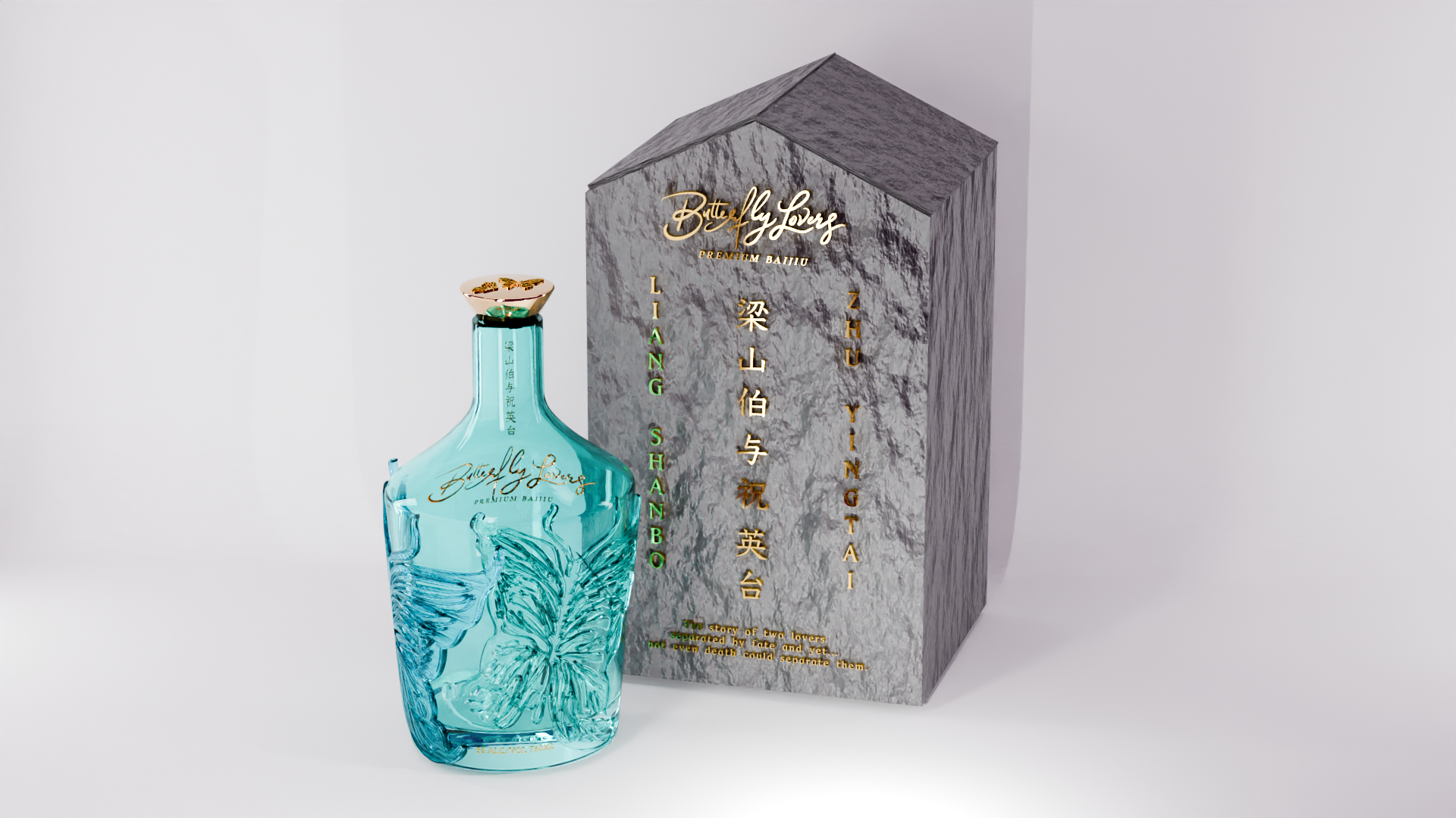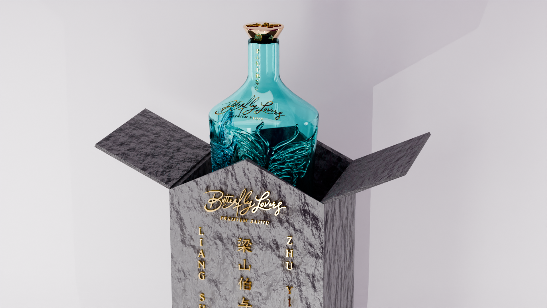 Butterfly Lovers Premium Baijiu captures the spirit of the classic Chinese folktale of two lovers whose bond transcends life itself. The design uses elegant typography and refined detailing to express the beauty and tragedy of their story. I created both middle tier and high tier bespoke bottles, both rendered in the Blender 3D program.