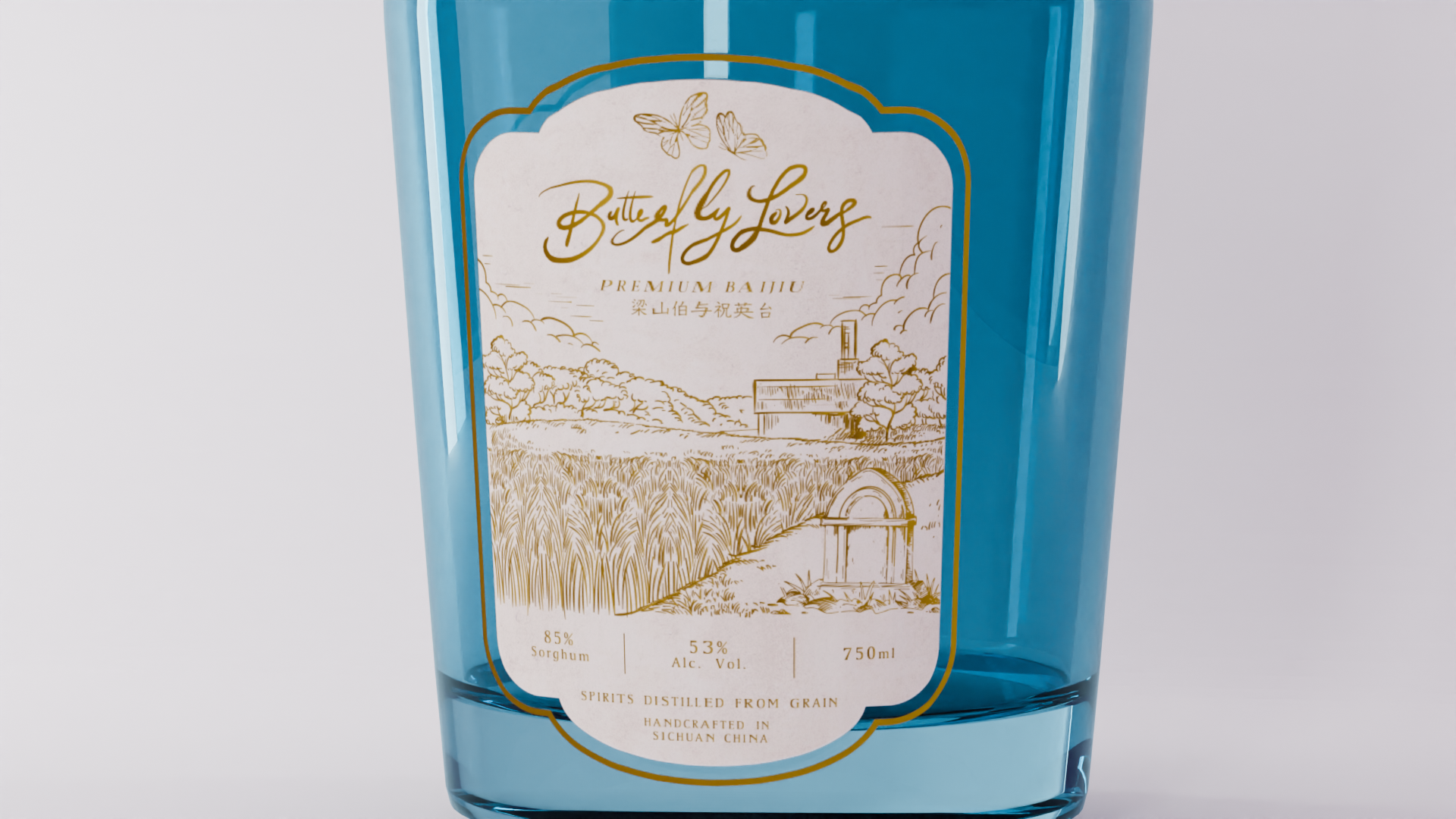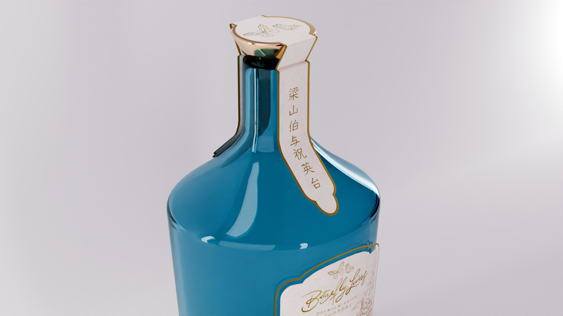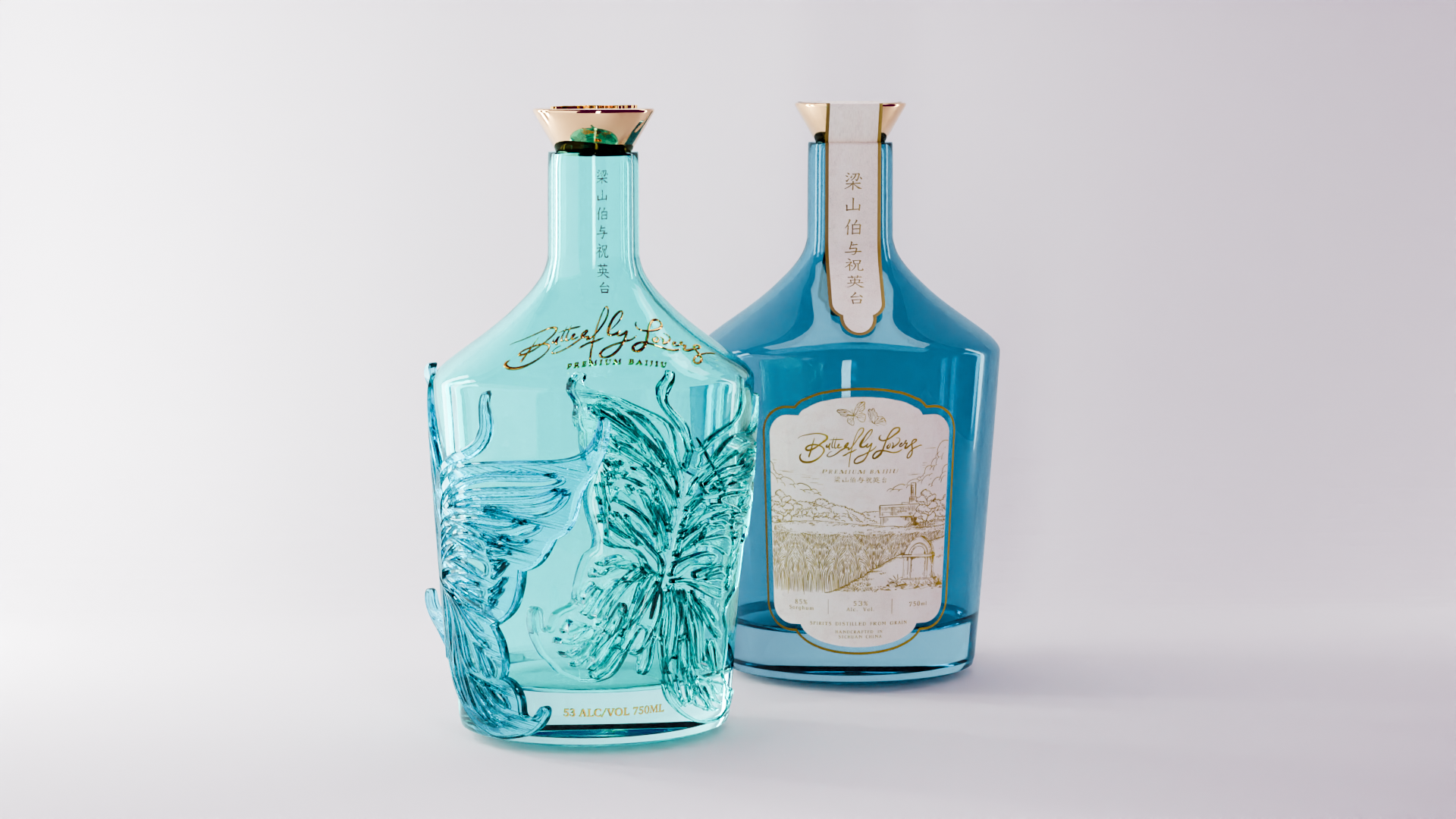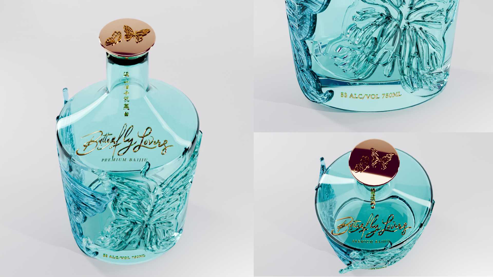 Butterfly Lovers Premium Baijiu captures the spirit of the classic Chinese folktale of two lovers whose bond transcends life itself. The design uses elegant typography and refined detailing to express the beauty and tragedy of their story. I created both middle tier and high tier bespoke bottles, both rendered in the Blender 3D program.