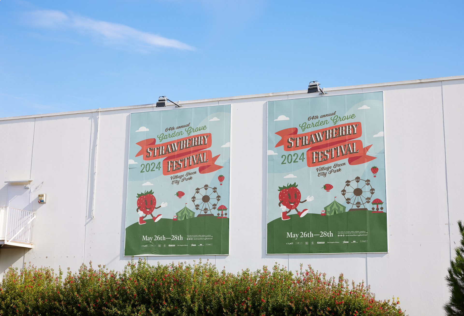 The Garden Grove Strawberry Festival began in 1958 as a community gathering to celebrate the city's bountiful strawberry fields. For this design system, I illustrated a strawberry mascot character amidst a strawberry dreamland that will have young kids begging their parents to go.