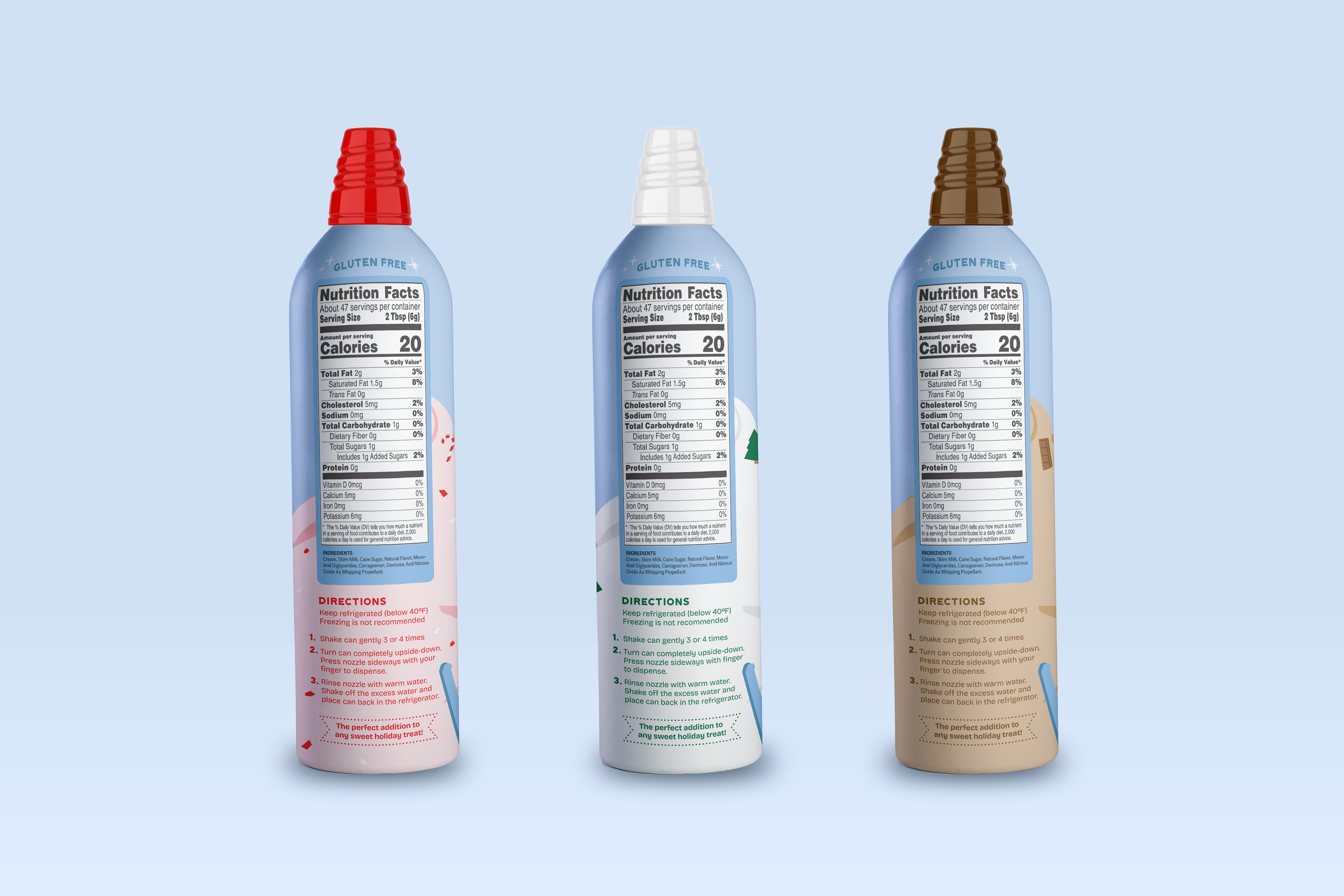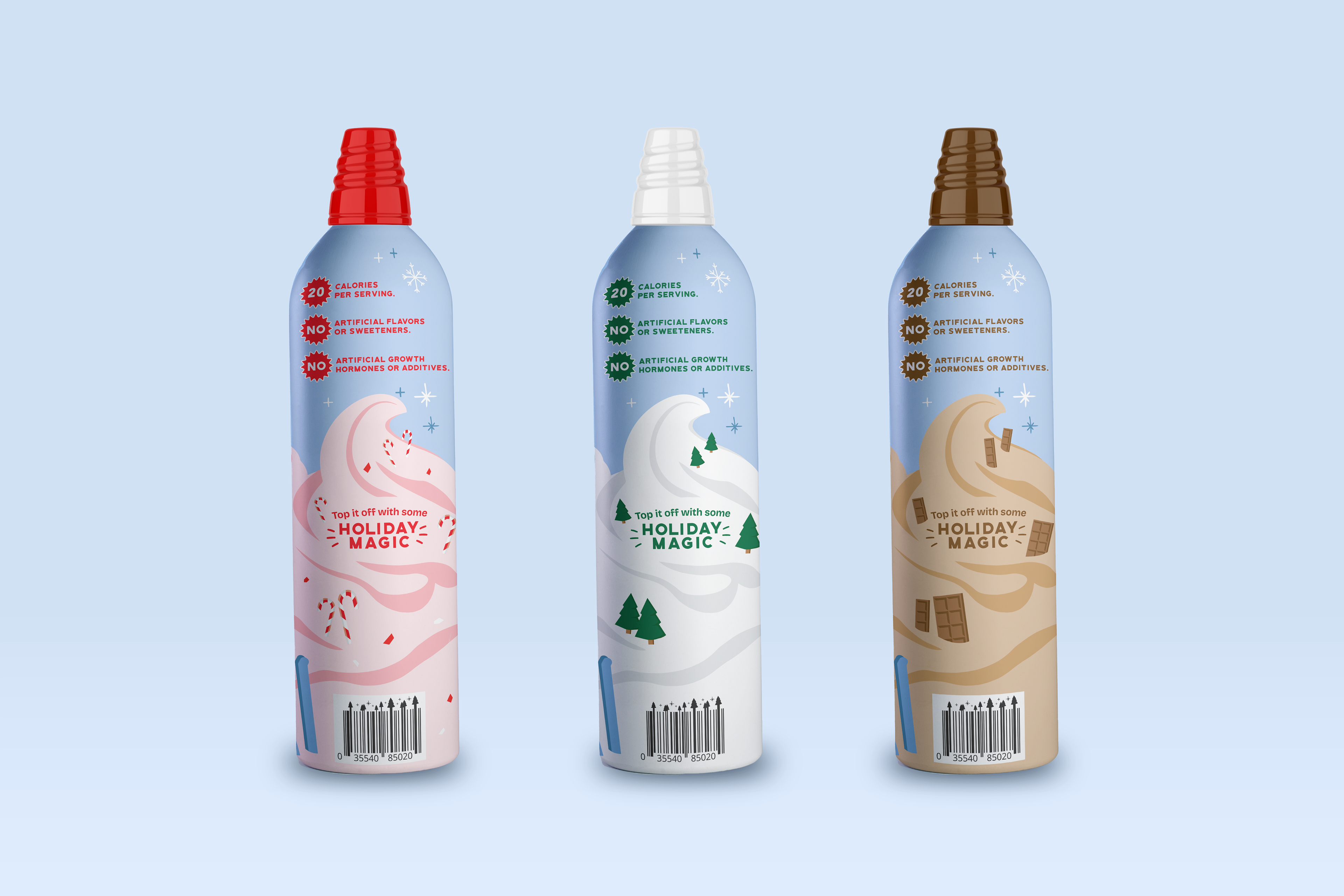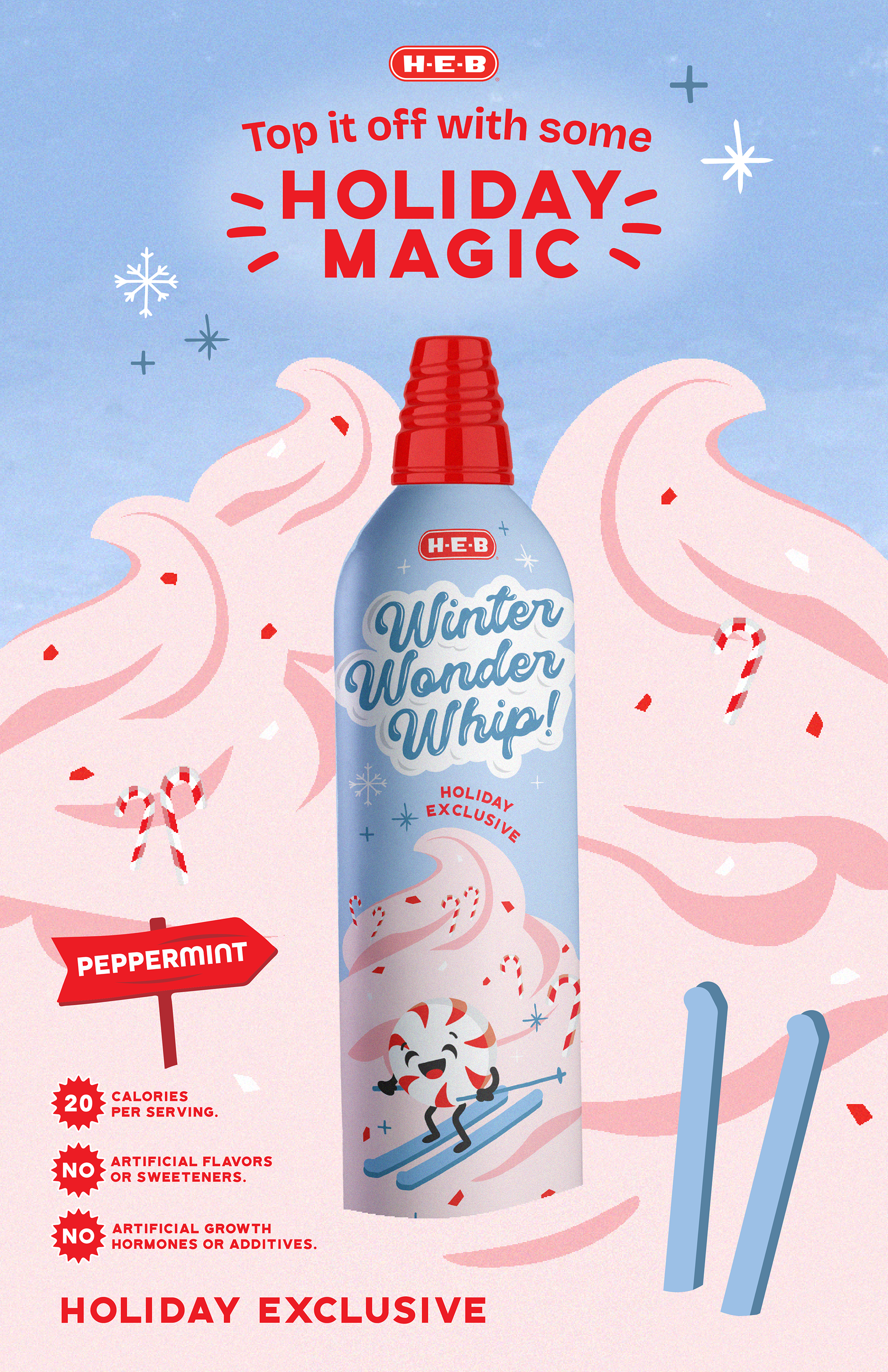 H-E-B is a supermarket chain throughout Texas. This project involved designing a set of packaging for a grocery item for H-E-B. I chose whipped cream and created the sub-brand "Winter Wonder Whip" as a holiday-exclusive item to capture the joy and excitement of the holiday season.