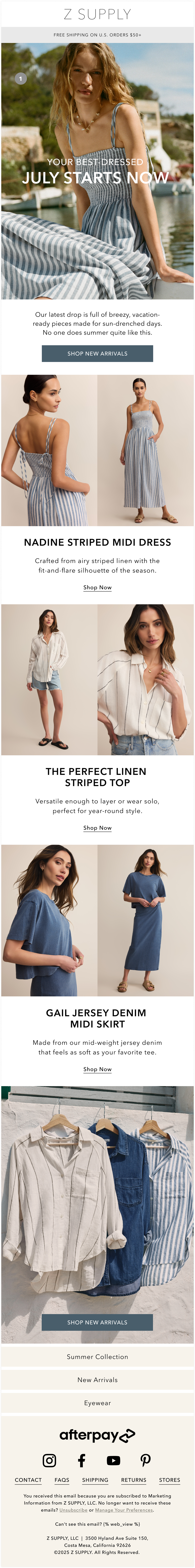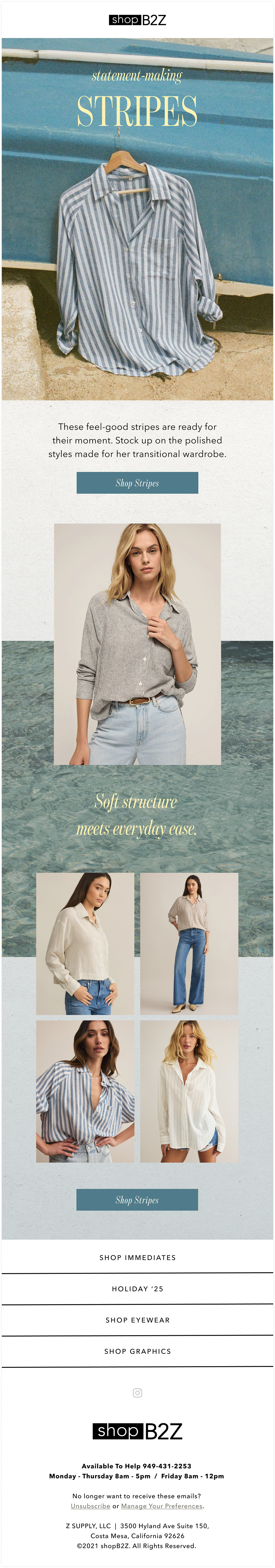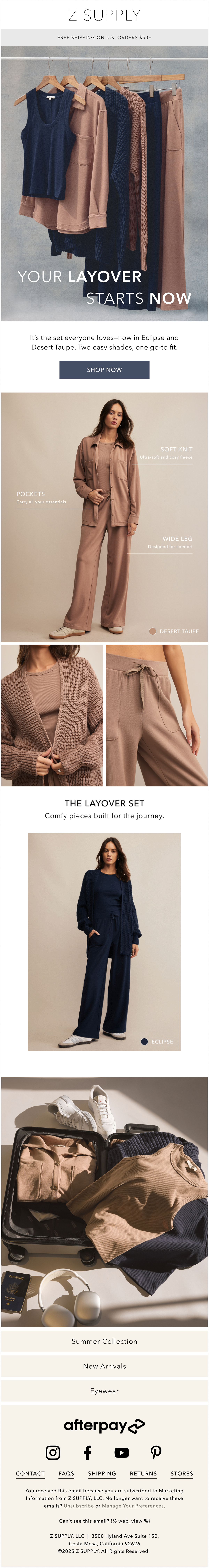 As a Creative Intern at Z SUPPLY, I contributed to the visual identity of a leading women’s apparel brand by designing digital assets across social, email, web, and paid media channels. My work supported seasonal campaigns and helped communicate the brand’s effortless, everyday style through cohesive and engaging design.